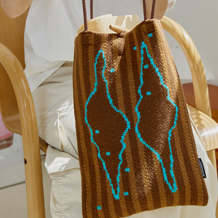 アートのような抽象的デザインとストライプ柄が特徴のニットトート。