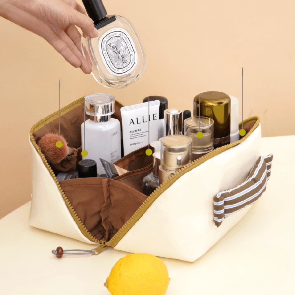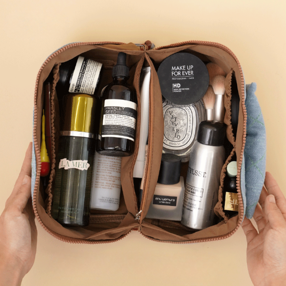 メイク道具やスキンケア、ガジェット類までしっかり収納でき、旅行・お泊まり・日常使いまで幅広く活躍します。