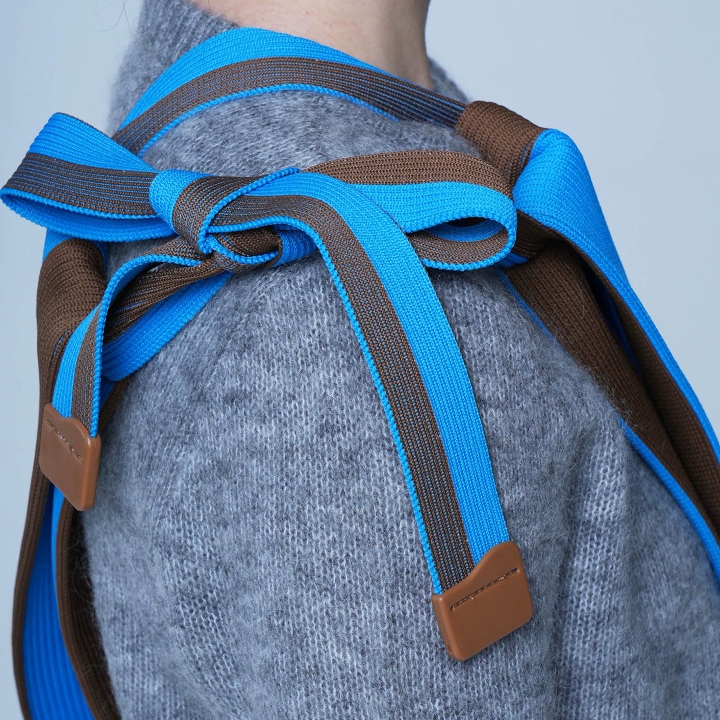 肩紐にはリボンが結ばれており、シンプルなコーデにも遊び心をプラスしてくれます。
