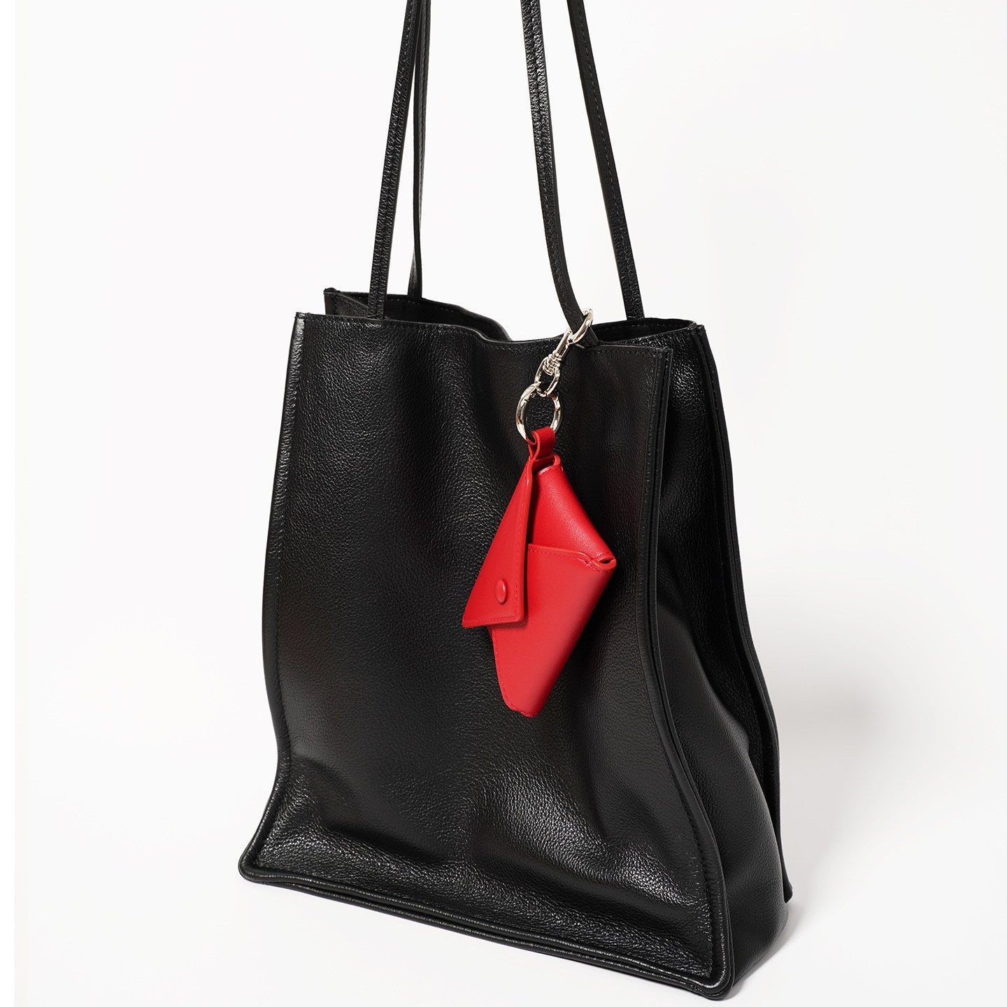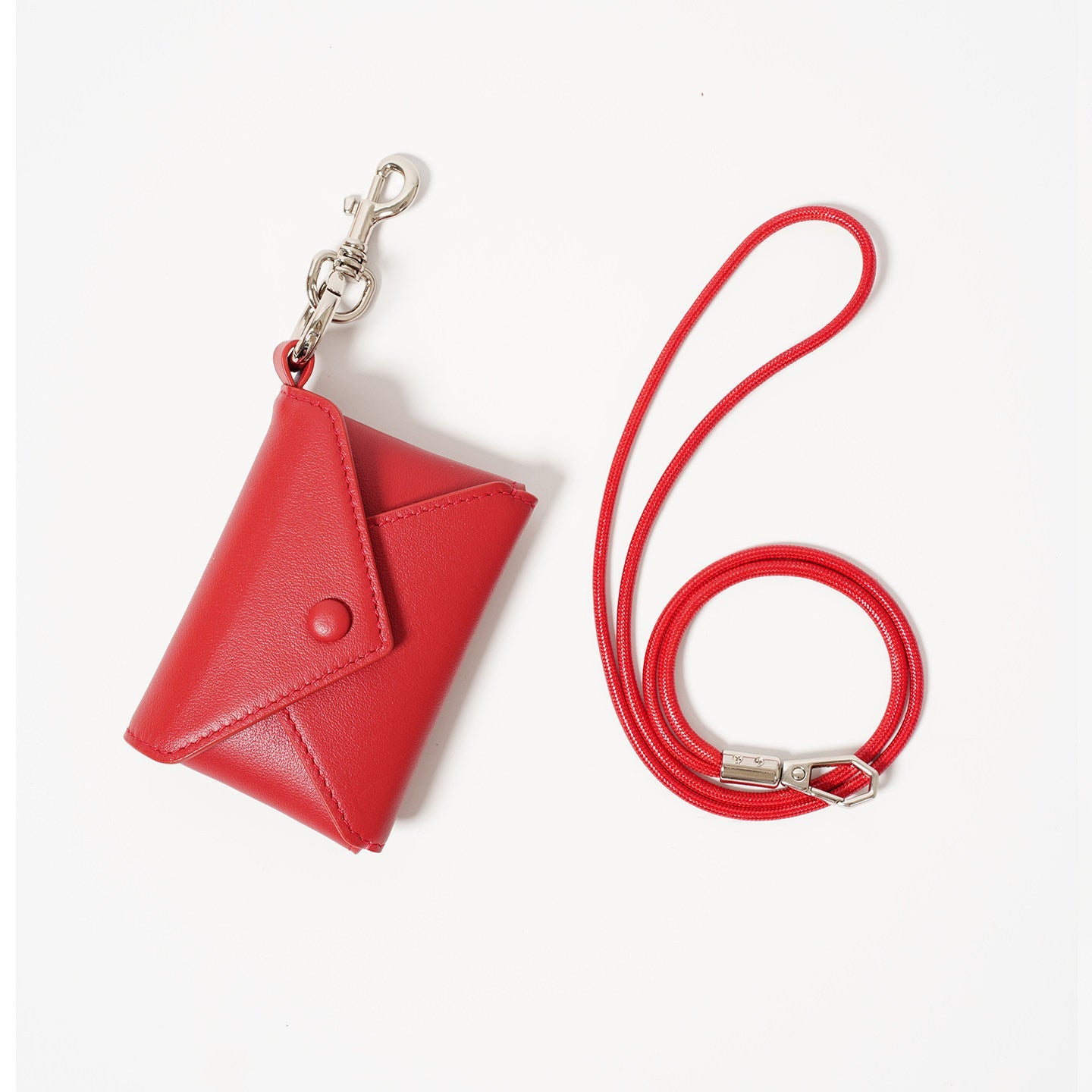 封筒をモチーフにしたミニマルなフォルムが印象的な、レザーカードケース。上質な牛革を使用し、手のひらサイズながらも立体的な構造でカードや小物をすっきり収納できます。スナップボタン仕様でバッグや鍵に取り付けられるチャーム付き。