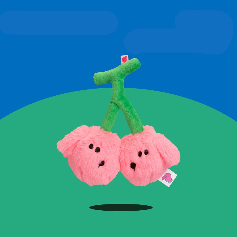 思わず二度見しちゃうユニークな可愛さ!「ピンクチェリードッグチャーム」は、チェリーのように仲良く並んだ2匹のピンクドックがモチーフのぬいぐるみチャームです。