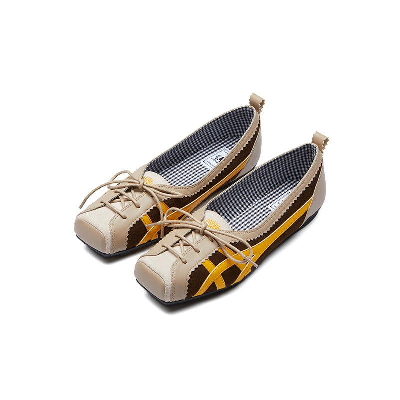 スニーカーから着想を得たディテールと、フラットシューズの上品さをミックスし、デイリーコーデにユニークなアクセントをプラスします。コントラストの効いたステッチやサイドライン、チェック柄のインソールが、レトロでモダンな雰囲気を演出。
