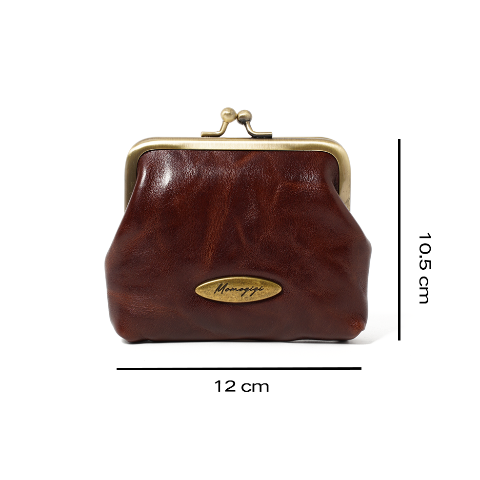 しっとりと手になじむ、上質な牛革を使用したがま口ポーチ。クラシックな金具フレームと、自然なシワ感のあるレザーがヴィンテージライクな雰囲気を演出します。