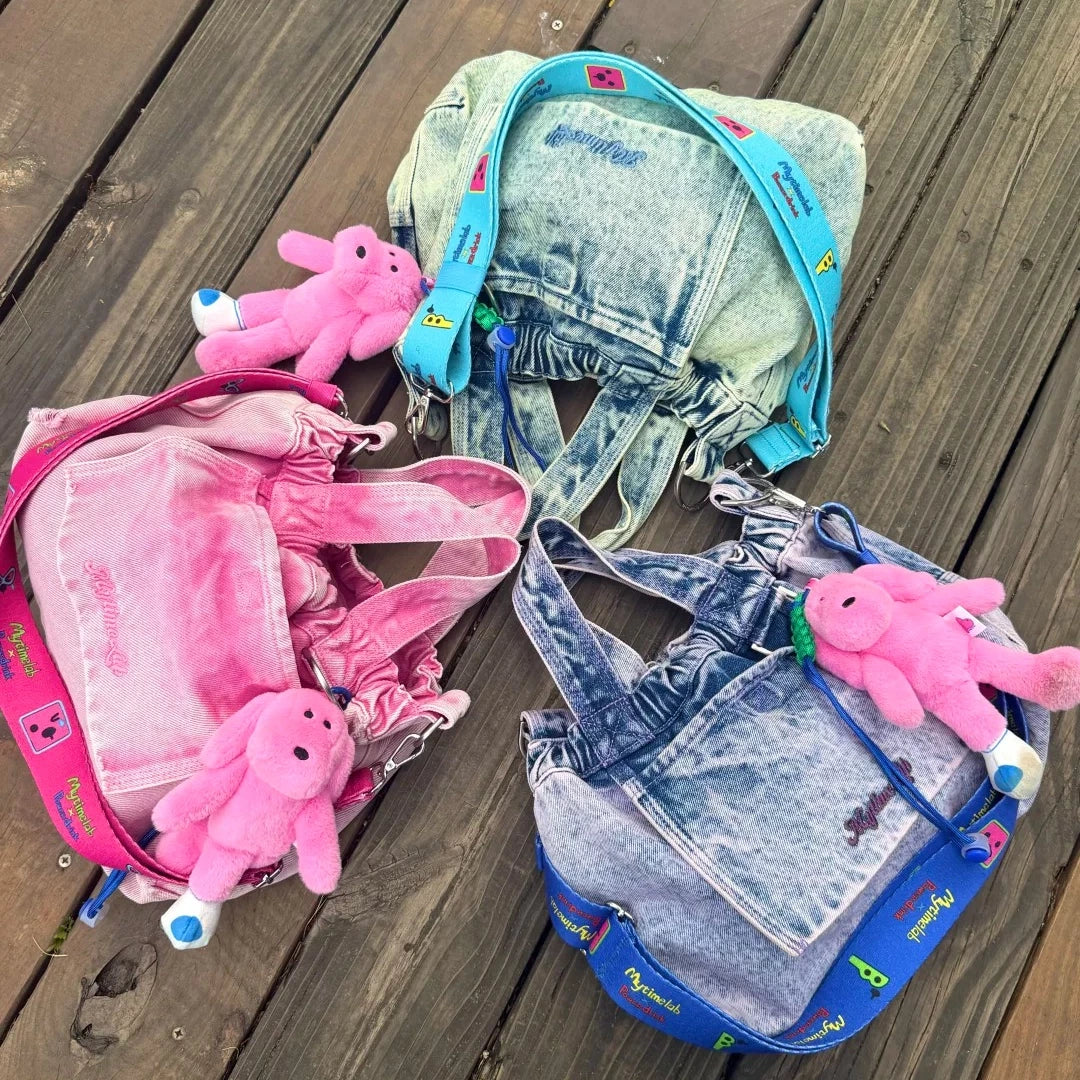 カラーデニム×ウォッシュ加工が可愛い2WAYトートバッグ。